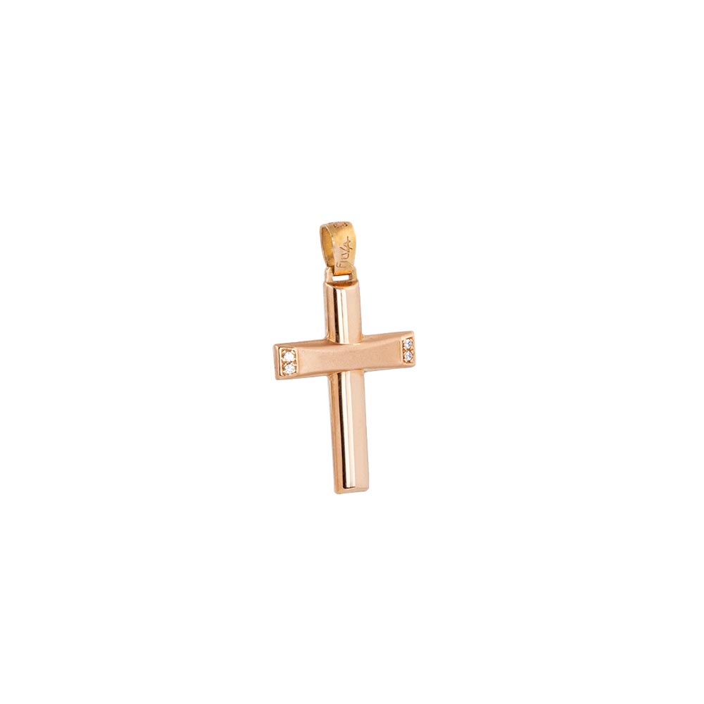 Σταυρός , μοντέρνος Ροζ Χρυσό 14Κ με ζιργκόν
